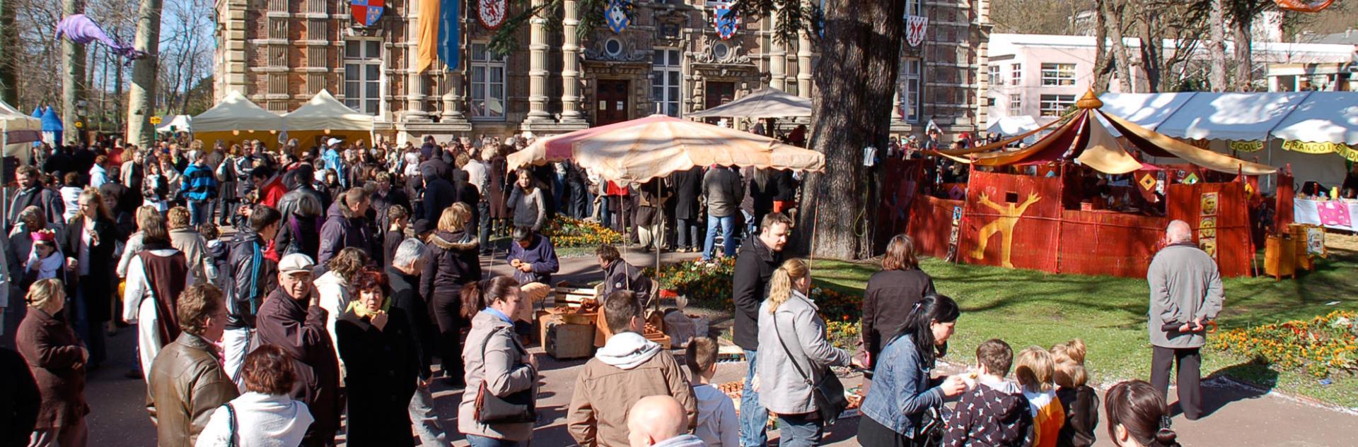 • d'un marché artisanal médiéval composé d'une soixantaine d'artisans (costumes, bijoux, objets historiques...)